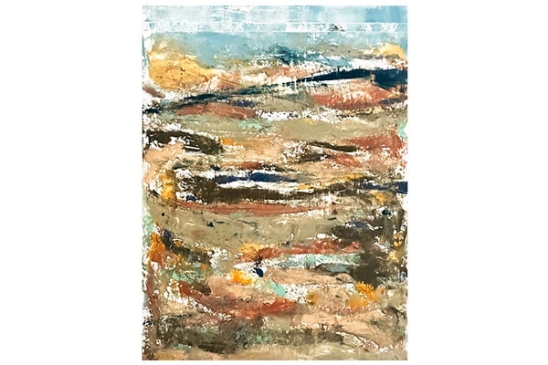 Unexpected Bloom is a one-of-a-kind monotype with pencil, 14 × 10 inches, framed to 22 × 18 inches in black wood.