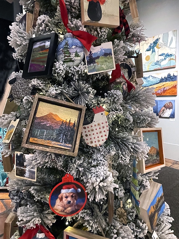 It’s that time of year again! Coming right before Thanksgiving, our tiny art made by our artists will be displayed on our wintery, sparkly trees, waiting for you. Hand-made, original, tiny art made especially for giving. This artwork is the unique gift for those special folks on your list, hostess gifts and…yes…for you too! Give Art!